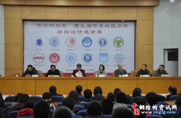 2012年12月12日上午,由安徽偉宏鋼結構有限公司協辦的“偉宏鋼構杯”第九屆華東地區高校結構設計邀請賽開幕式在合肥工業大學學術會議中心大報告廳舉行。邀請賽委員會主任、同濟大學土木工程學院副院長熊海貝,合肥工業大學副校長劉曉平,安徽偉宏鋼結構有限公司副總經理郭年勇,安徽建工集團建筑設計研究院常務副院長孫有勇等出席了邀請賽開幕式。包括上海交通大學、同濟大學、上海大學、東南大學、南京航空航天大學等12所大學代表隊參加了本次邀請賽。 |
