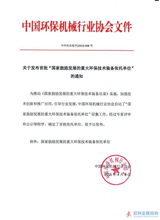 2014年12月19日,工信部、科技部、環(huán)境保護(hù)部等三部委聯(lián)合發(fā)布《國(guó)家鼓勵(lì)發(fā)展的重大環(huán)保技術(shù)裝備目錄(2014年版)》(以下簡(jiǎn)稱“2014年版目錄”),公司研發(fā)的“燃?xì)怆姀S低頻噪聲源頭治理成套裝備”列入2014年版目錄第六類“噪聲與振動(dòng)控制”項(xiàng)下,是2014年版目錄中列示的唯一與噪聲治理有關(guān)的技術(shù)裝備項(xiàng)目。 2014年版目錄發(fā)布后,中國(guó)環(huán)保機(jī)械行業(yè)協(xié)會(huì)受工信部委托于2015年1月啟動(dòng)了“國(guó)家鼓勵(lì)發(fā)展的重大環(huán)保技術(shù)裝備依托單位”征集工作,經(jīng)專家評(píng)審和公示等程序,最終確定了148家依托單位,華電重工股份有限公司被認(rèn)定為“燃?xì)怆姀S低頻噪聲源頭治理成套裝備”唯一依托單位。2015年4月8日,工信部在網(wǎng)站上公開發(fā)布了華電重工股份有限公司等148家依托單位名單。 經(jīng)過近四年的研發(fā),公司燃?xì)怆姀S噪聲源頭治理技術(shù)獲得重大突破,并在工程項(xiàng)目上成功實(shí)施應(yīng)用。此次被列入國(guó)家鼓勵(lì)發(fā)展目錄和被認(rèn)定為重大環(huán)保技術(shù)裝備依托單位,充分表明公司研發(fā)的噪音治理技術(shù)裝備獲得了國(guó)家層面的認(rèn)可,將對(duì)該項(xiàng)技術(shù)裝備的推廣應(yīng)用起到強(qiáng)有力的推動(dòng)作用。公司通過技術(shù)創(chuàng)新詮釋和踐行了“創(chuàng)造綠色生產(chǎn)、促進(jìn)生態(tài)文明”的企業(yè)理念。